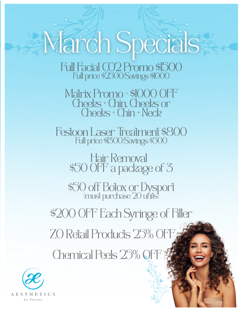 Aesthetics by Katzen March Product and Treatment Specials